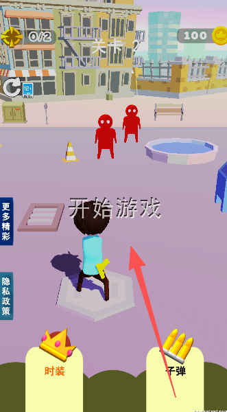1、戳一下“开始游戏”按钮,这场让子弹“拐着弯”找人的奇妙冒险就正式开幕啦。