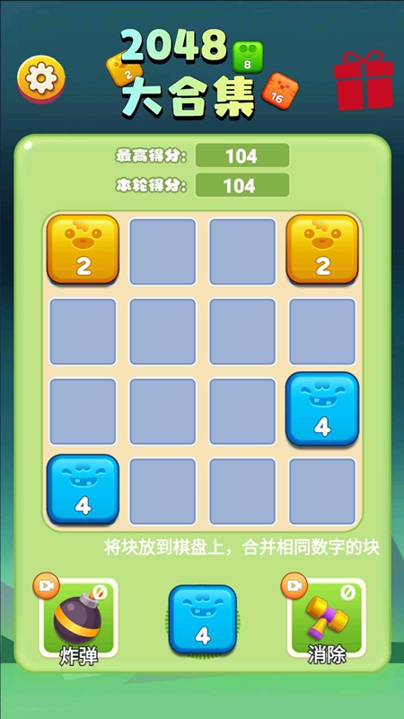 1、进入选定模式后,通过滑动屏幕操控数字方块移动,相同数值方块碰撞后合并升级,每次操作后随机生成 2 或 4,筑牢合成进阶基础。