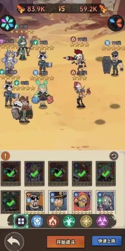 1、进入游戏可选择自己喜欢的人物进行上场。