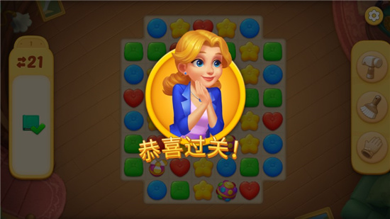 3、使用收集的材料改造房屋、布置庭院,解锁更多高级装饰与新区域,完成装扮目标后开启更高难度的消除挑战。