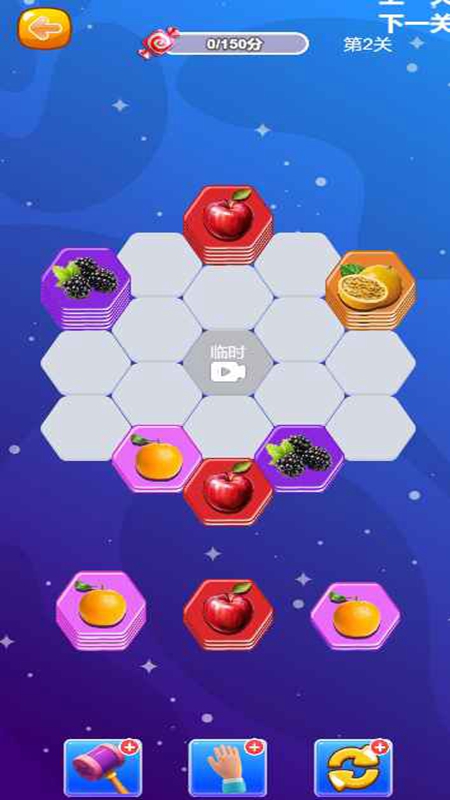 3、内置“蜂巢爆发”机制,一次性消除五个及以上水果可触发全屏特效,解锁额外积分加成与时间奖励,强化爽感。