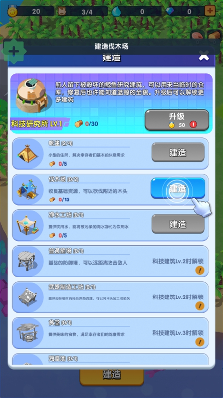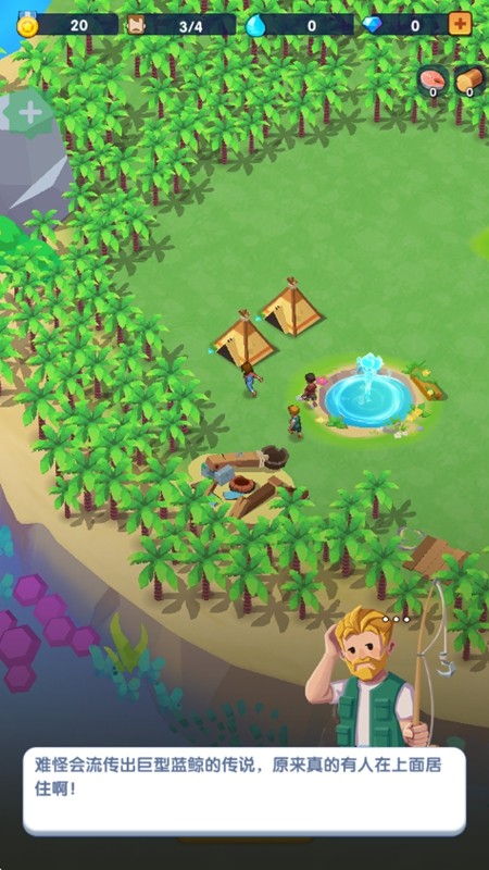 1、初始收集木材、水源等基础资源,规划蓝鲸背部空间,建造房屋、伐木场等基础设施,满足生存基本需求,筑牢家园根基。