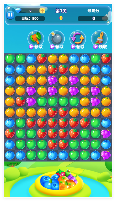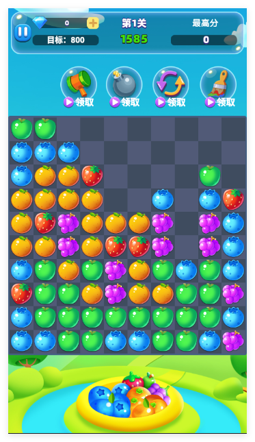 2、点击三个以上相同颜色的水果即可消除。