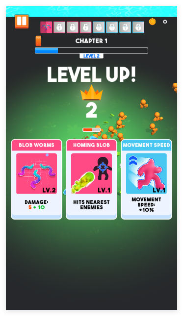 2、升级后从众多进化选项中挑选适配的成长方向,根据战场情况搭配技能组合,强化果冻人的战斗能力与生存续航。