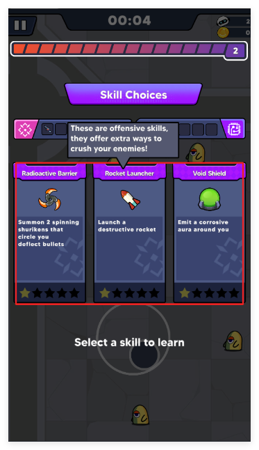 2、瞄准涌来的僵尸持续输出火力,战斗中拾取掉落的升级道具,为武器和技能提升等级与威力。