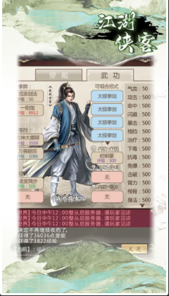 2、设置武学自由搭配系统,从基础拳脚功夫到高深剑法掌法,可随意组合招式,不同搭配能打造专属的战斗风格与侠者风采。