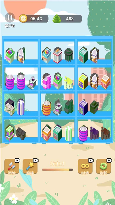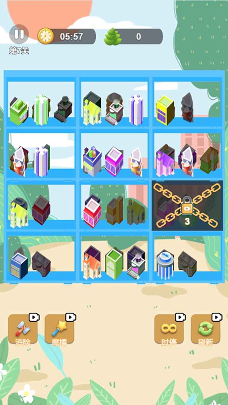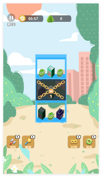 2、创新连锁消除机制,单次消除数量达标可触发彩虹方块、炸弹方块等特殊道具,大幅提升闯关效率与爽感。