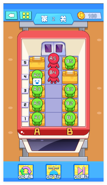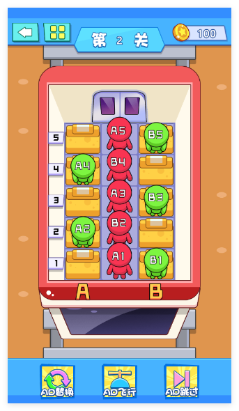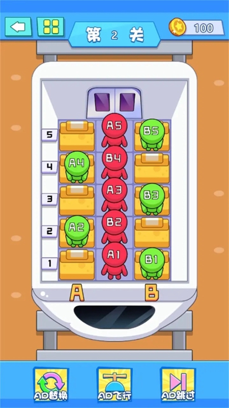 3、拖动角色完成座位调换,实时查看调整后的反馈,根据角色反应优化布局,直至满足所有需求,达成关卡目标并解锁新场景。