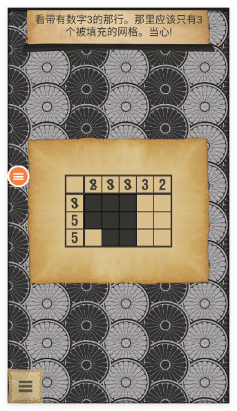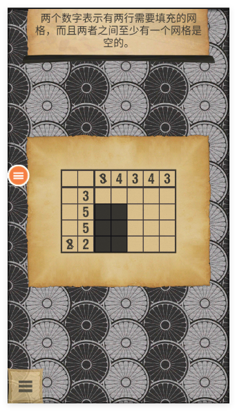 1、进入游戏选择对应难度的谜题关卡,观察格子边缘的数字提示,明确每行每列需要填充的方块数量与分布规律,做好解谜准备。