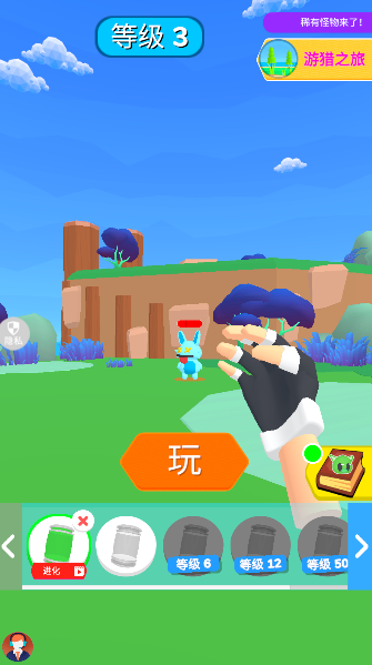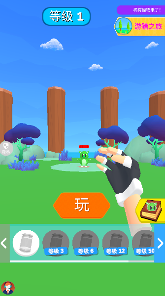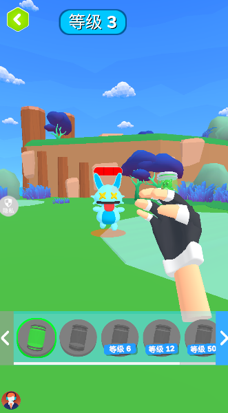 1、先在第一关练练手,瞄准那只绿油油的小家伙,揍它就能攒经验升级啦。