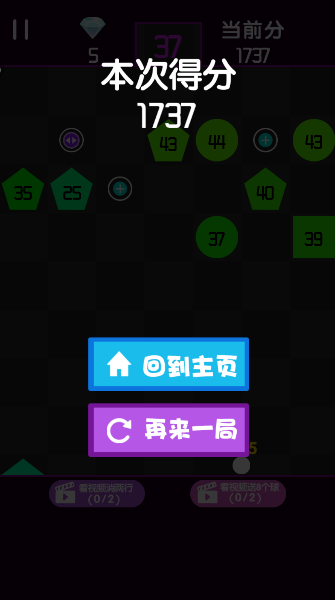3、方块上的数字就是它的“血量”,打一下减一点,可别让它们碰到底线,不然游戏就结束啦。