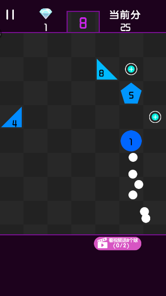 2、看准角度弹射小球,让它在砖块间来回反弹,把那些顶着数字的方块通通“打回老家”。