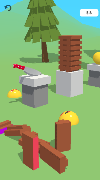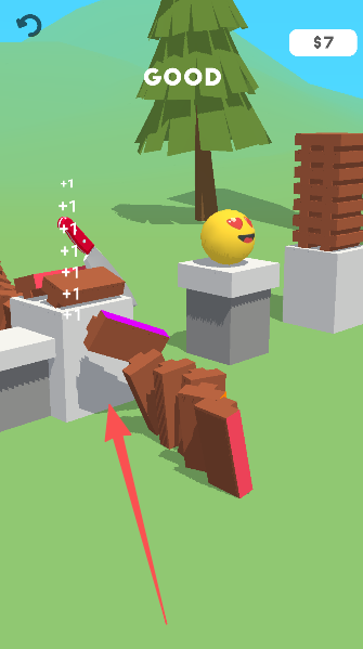 2、用飞刀把路上的东西统统劈开,每切开一个都有惊喜奖励跳出来哦。