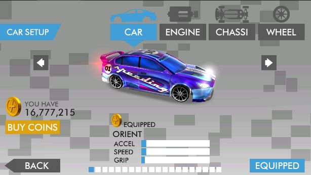1、从赛车库选择适配车型,初始只有蓝色赛车。