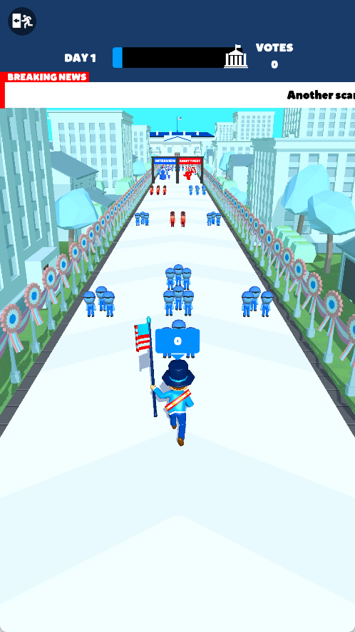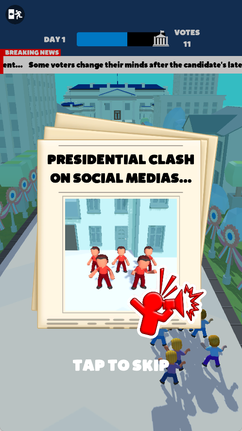 3、避开竞争对手的干扰,积累足够选票击败对手,赢得当前关卡选举,解锁新角色、道具与更高难度竞选场景。