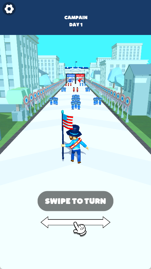 2、操控橡皮人移动、互动,完成演讲、帮选民解决小麻烦等任务,收集选票。