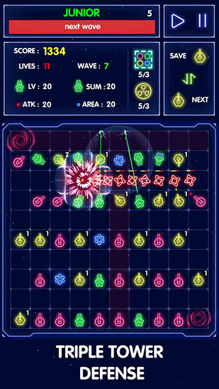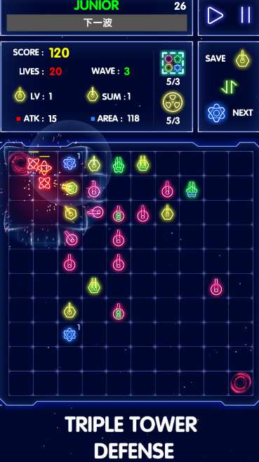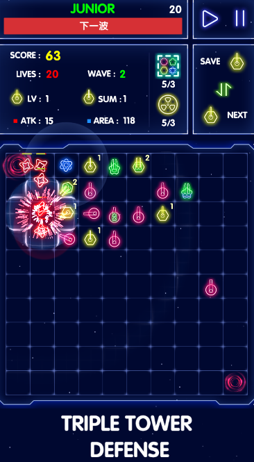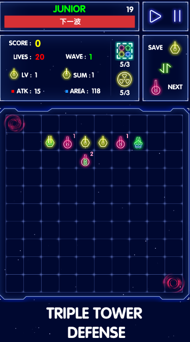 3、持续合成超攻塔激活额外增益,冲击更高关卡波次与积分记录。