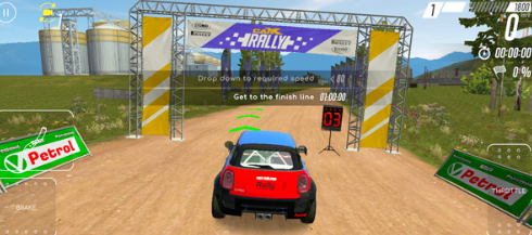 1、赛道还原专业标准,涵盖 30% 砂石 + 70% 柏油混合路面,设有连续弯道与跳跃坡道,复刻真实拉力锦标赛赛道特性。