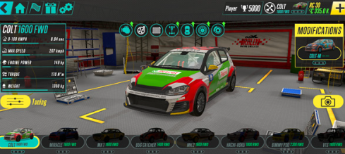 1、从车库挑选适配赛道的拉力车,适应悬挂与抓地力反馈。