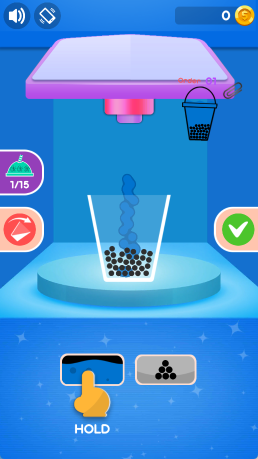 1、点击屏幕进入游戏,选择奶茶基底,混合喜欢的口味,自由添加珍珠、冰淇淋等配料。