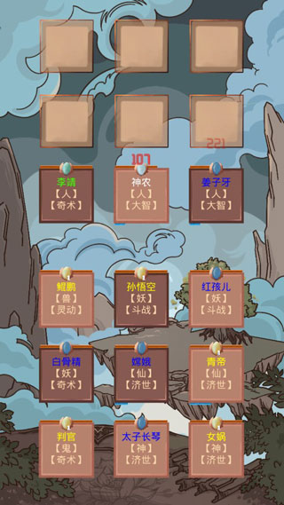 3、随着关卡推进逐步扩充上阵英雄数量,调整阵容站位与羁绊搭配策略,与洪荒世界的人、妖、魔展开策略博弈,赢下对局胜利。