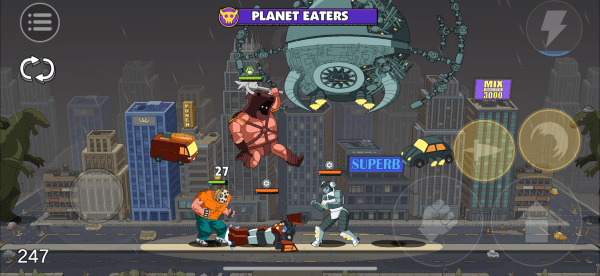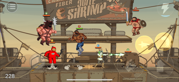 2、战斗中积累暴击能量解锁终极技能,利用场景油桶、弹簧床等互动元素辅助攻击,针对敌人弱点发起精准打击占据优势。