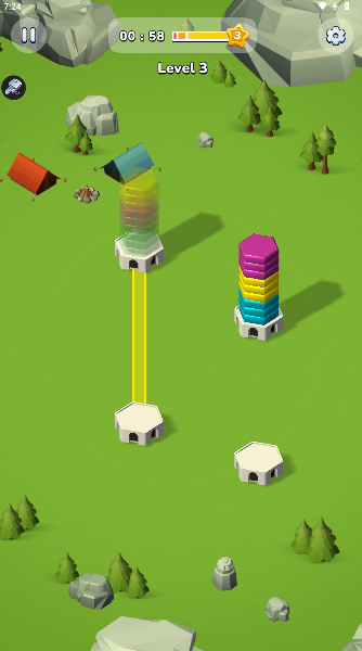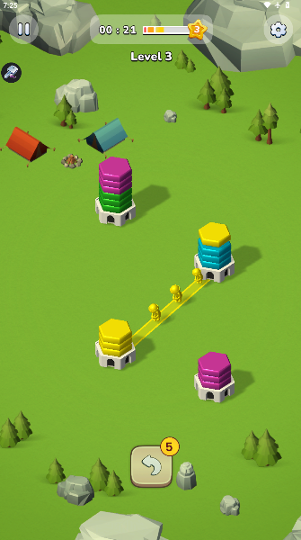 《塔式排序3D》是一款以三维空间排序为核心的益智游戏。核心玩法涉及对不同颜色与形状的六边形拼图块进行整理与堆叠,目标在于构建结构稳定的多层塔形。界面采用简洁明快的三维视角,操作基于拖拽与放置的逻辑。丰富的关卡与多变的拼图组合旨在维持解谜过程的新鲜感与挑战性。