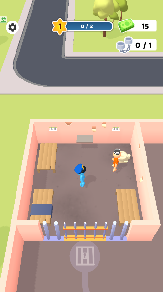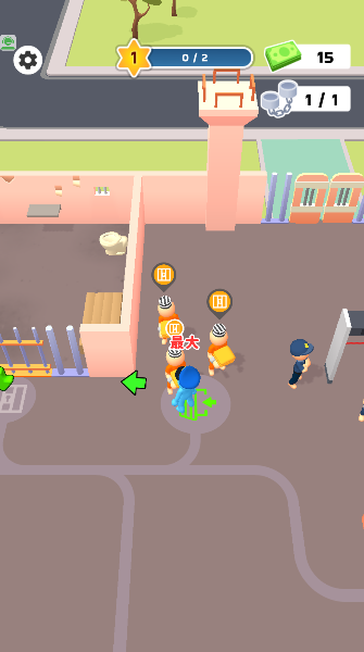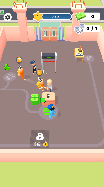 1、开局跟着箭头走,指挥蓝制服警员大叔,大摇大摆地走进监狱大门去巡逻。