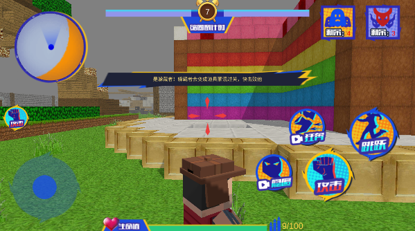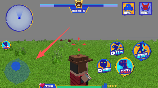 2、手指按住虚拟摇杆,控制你的方块小人悄悄移动,可别大摇大摆暴露了自己。