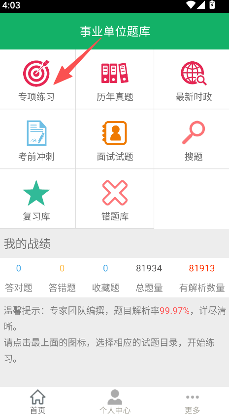 2、拥有真题练习功能,提供历年事业单位考试真题,帮助考生熟悉考试题型、难度及考情,提升应试能力。
