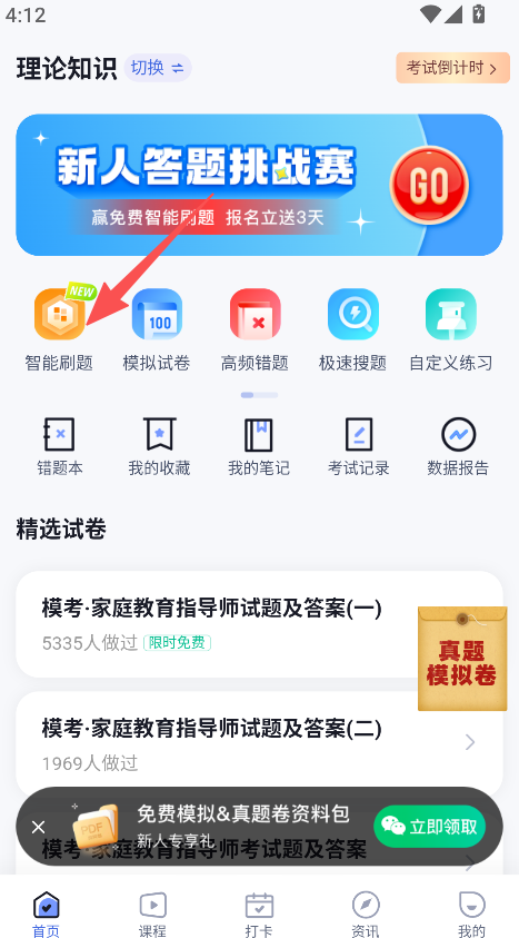 2、拥有模拟试卷功能,提供家庭教育指导师模考等试卷,帮助考生熟悉考试形式、题型及难度,提升应试能力。