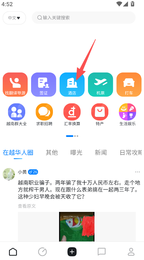 3、设有在越华人圈板块,可在该板块中获取求职招聘、汇率换算等本地生活类信息,满足在越场景下的生活辅助需求。