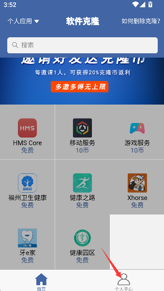 1、点击个人中心,就像走进专属的克隆指令大厅,所有数据迁移的操控权都在此处集结待命。