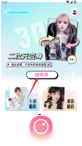 1、轻点“拍同款”按钮,仿佛启动一个神奇的漫画魔法,准备将现实瞬间变为二次元画作。