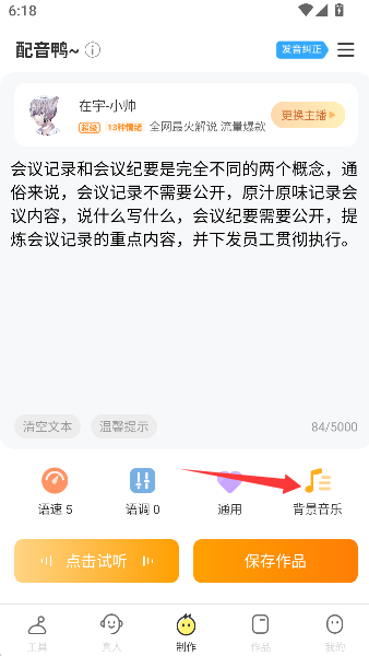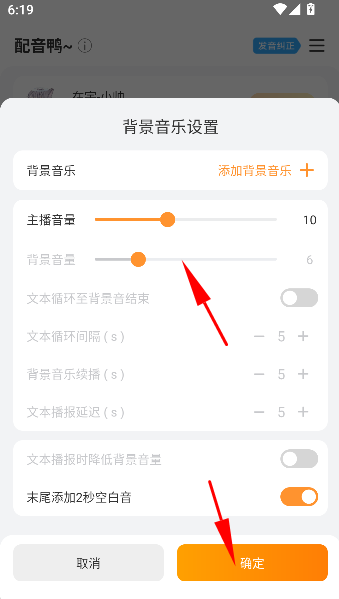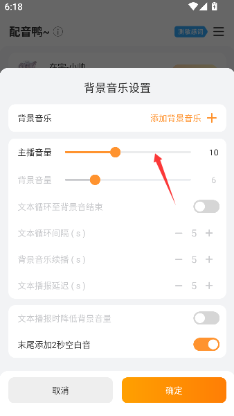 2、滑动主播音量调节杆,如同掌控一位虚拟主播的麦克风强弱,确保人声清晰突出又不过于突兀。