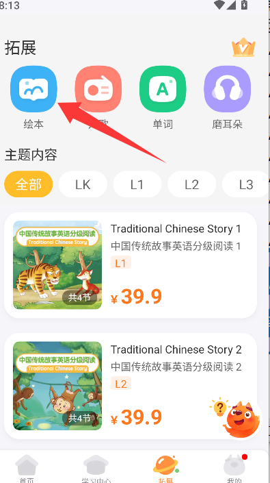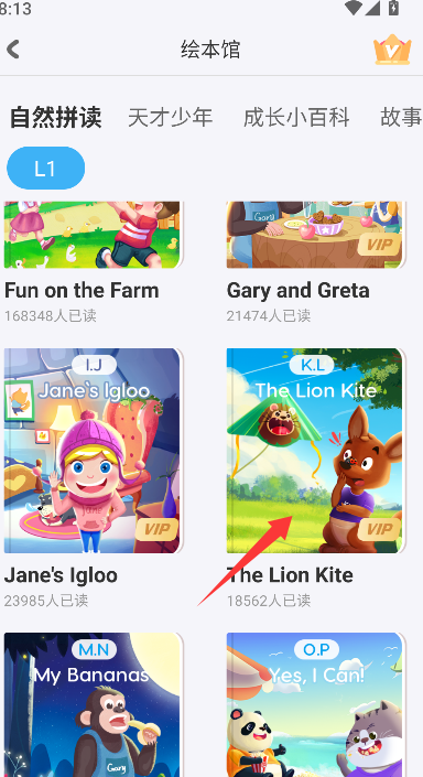 3、在绘本库中浏览并选择感兴趣的绘本封面或标题,点击该绘本即可开始阅读。