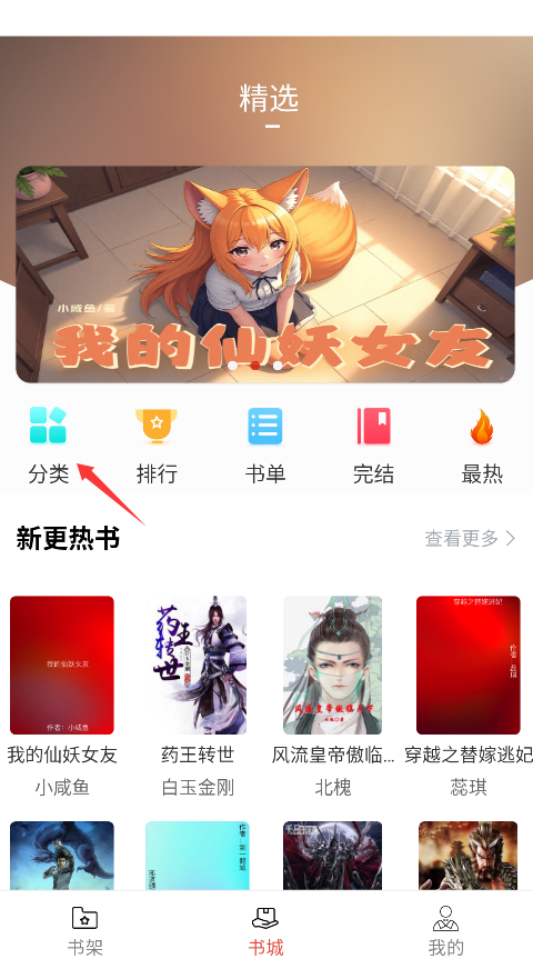 2、在主界面找到并点击“分类”入口,平台将展示所有已设定的文学题材类别,便于进行初步筛选。