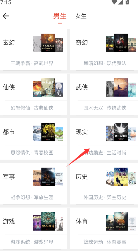 3、在分类列表中选择一个感兴趣的类型,平台随即呈现该类别下的全部小说作品,可从中挑选所需书籍。