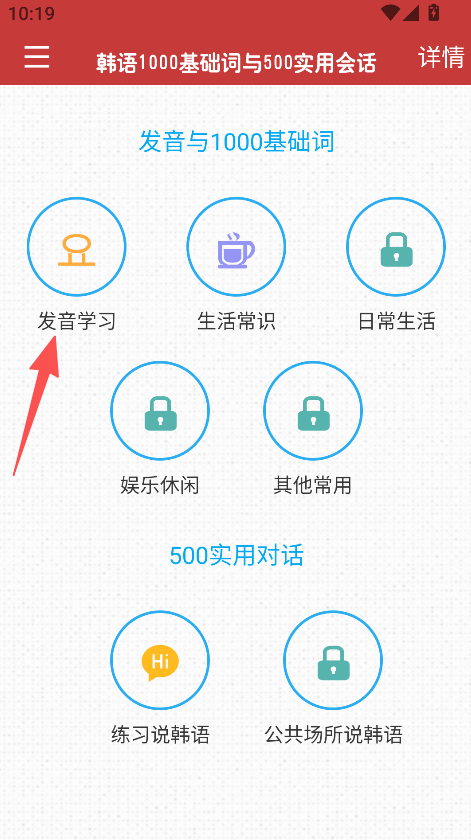 1、打开《韩语发音词汇会话》,点击发音学习板块。