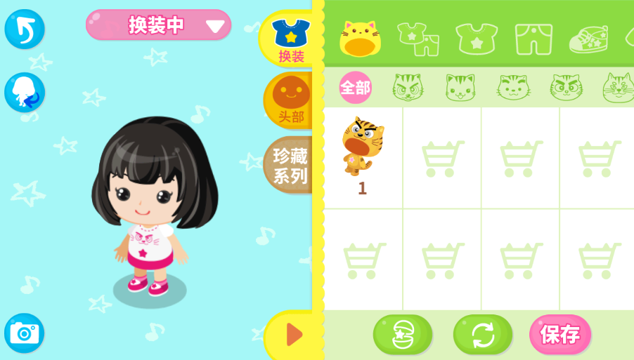 1、找到并进入虚拟形象编辑功能,即可开始为猫咪角色选择和更换服装。