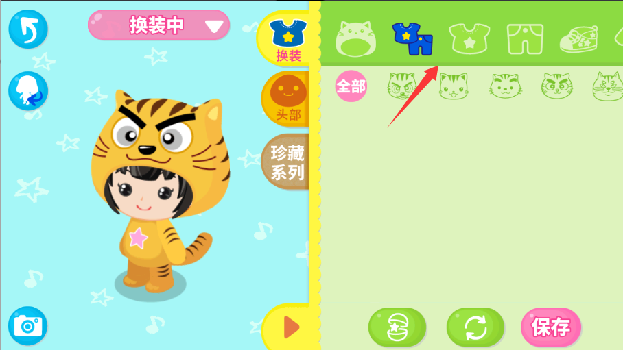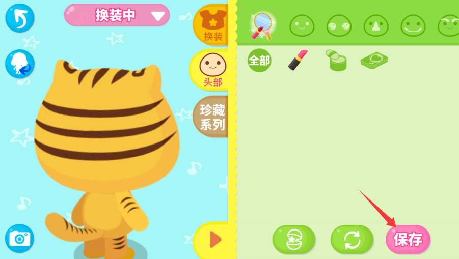 3、确定最终的装扮方案后,点击保存按钮,即可将搭配好的猫咪形象存储至本地相册或个人中心。