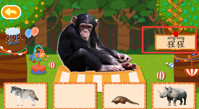 3、配对成功后,系统会自动显示该动物的中文名称并朗读标准发音,从而帮助学习者认识动物。