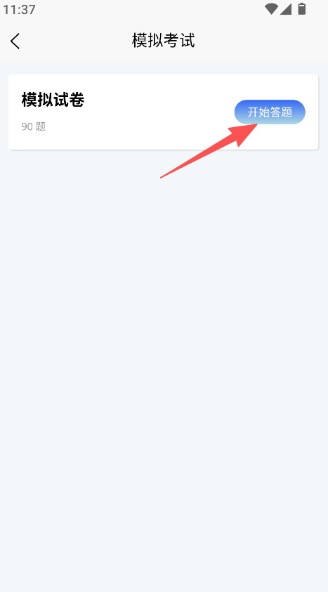 2、进入模拟考试页面,点击模拟试卷的开始答题按钮。