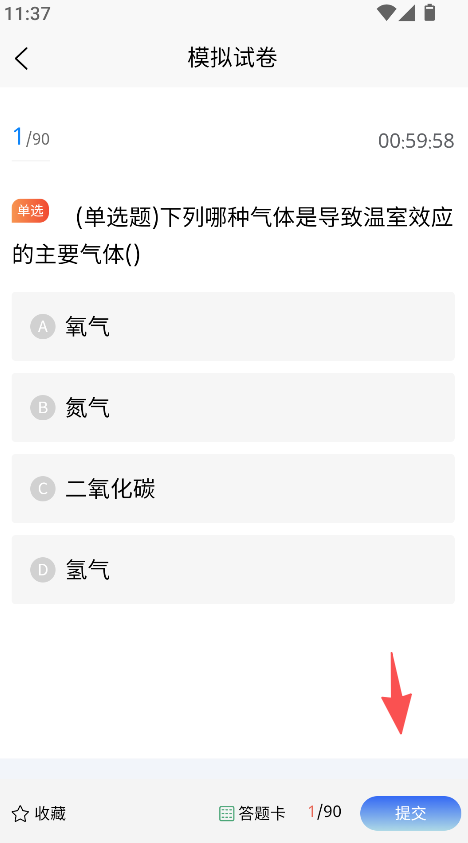 3、进入模拟试卷答题界面,完成题目后点击提交按钮。