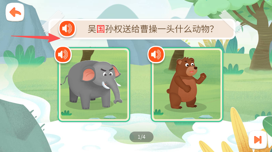 2、互动题目与成语故事强关联,故事内容结束后立即呈现对应题目,选项以图文形式展示,及时巩固所学成语内容。
