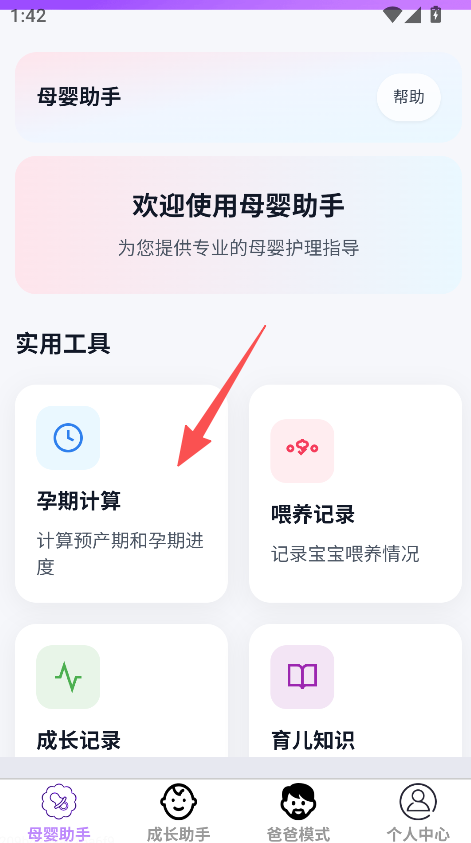 2、工具板块分类清晰直观,孕期计算、喂养记录等功能入口明确,无需复杂操作即可进入对应工具页面,提升母婴护理辅助操作的便捷性与效率。