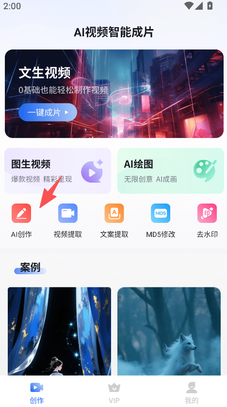 3、设案例板块展示成品效果,呈现不同风格的视频案例,为视频创作提供参考方向,辅助明确创作目标与效果预期。