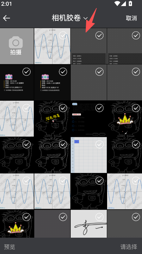 3、在相机胶卷中选择对应图片,完成首帧上传操作。
