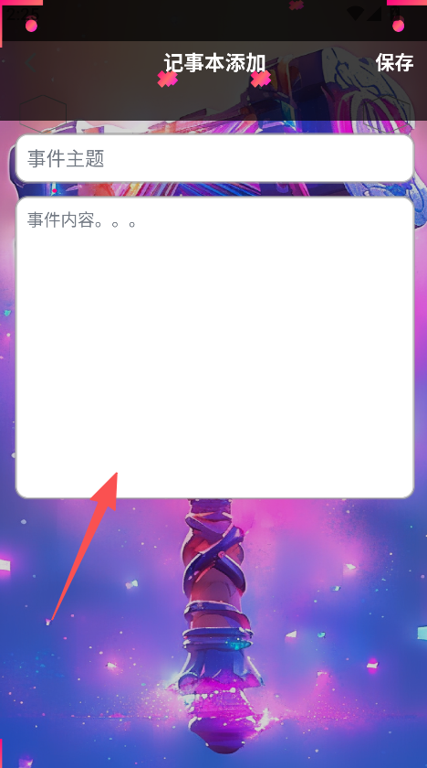 1、提供写个锤子功能,进入对应页面点击添加,填写事件主题与内容,完成记录操作。