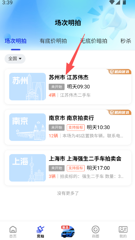 2、在场次明拍页面,选择目标城市的拍卖场次。